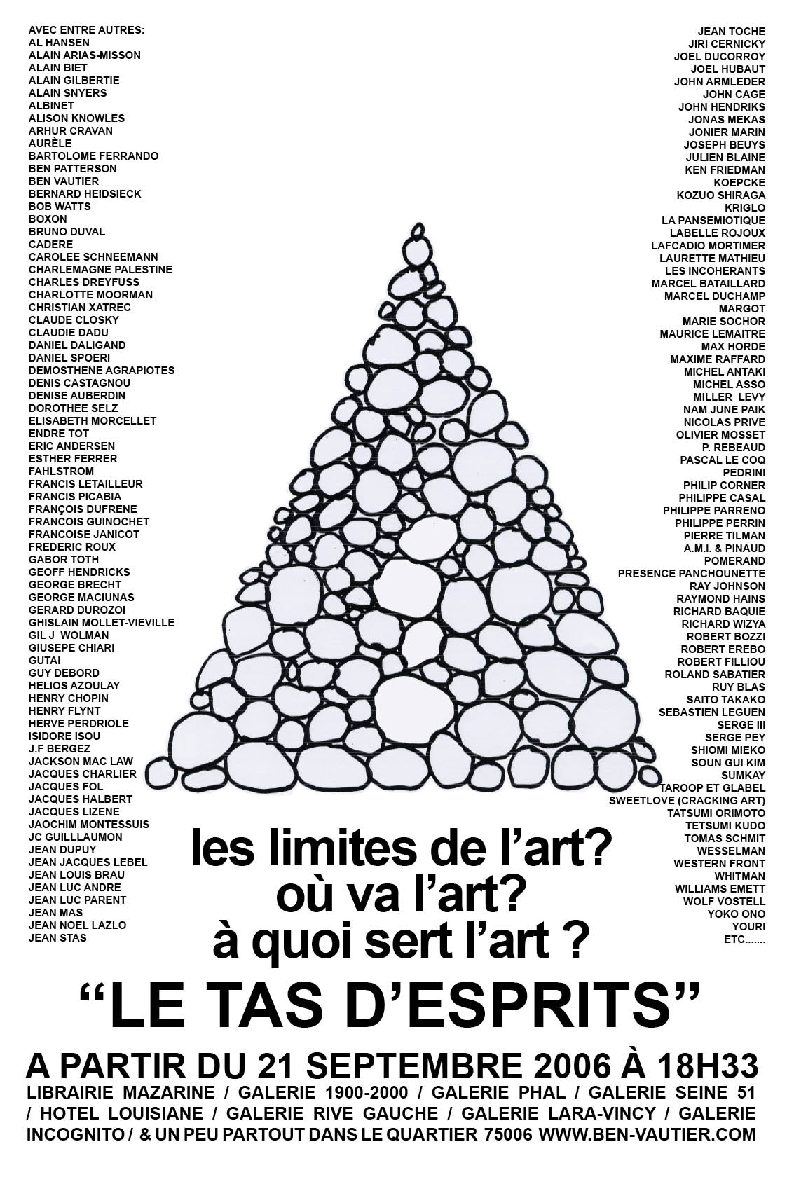 Sylvie Boulloud vient de le confirmer: mon film ALAIN GIBERTIE, VIVANT sera projeté dans le cadre de la manifestation LE TAS DESPRITS que lartiste BEN organise à Paris à partir du 21 septembre dans les galeries dart, un hôtel, un cinéma, les commerces et dautres lieux du 6ème arrondissement.